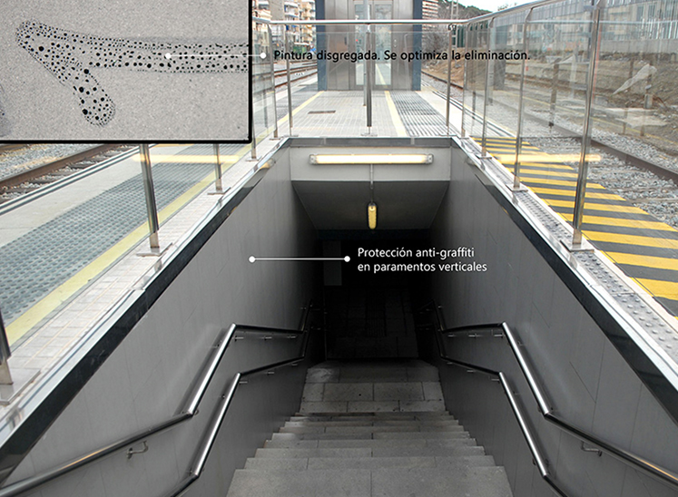 La aplicación del plan trata de proteger la fachada, las estaciones y todos los pasos inferiores de acciones vandálicas mediante recubrimientos de alto rendimiento, con propiedades anti grafiti, anti óxido, hidrofugantes, etc.