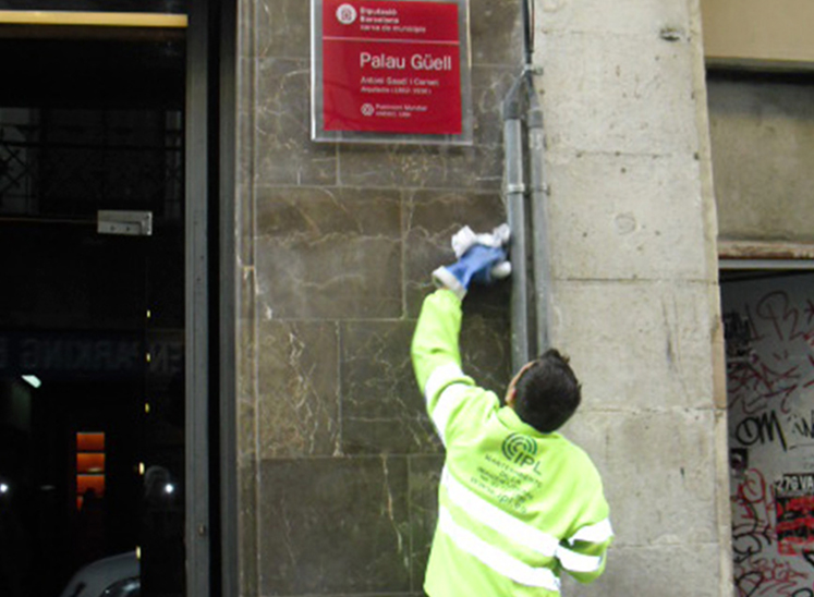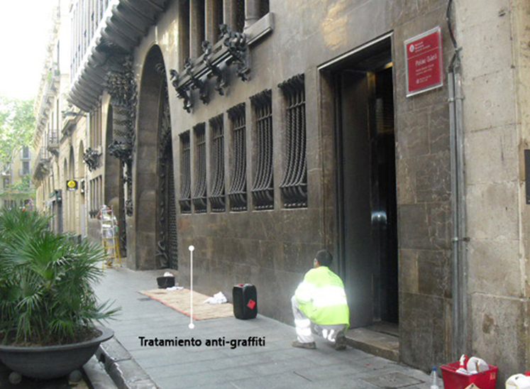 Recubrimiento anti-graffiti en piedra calcárea del Palau Güell (Gaudí)