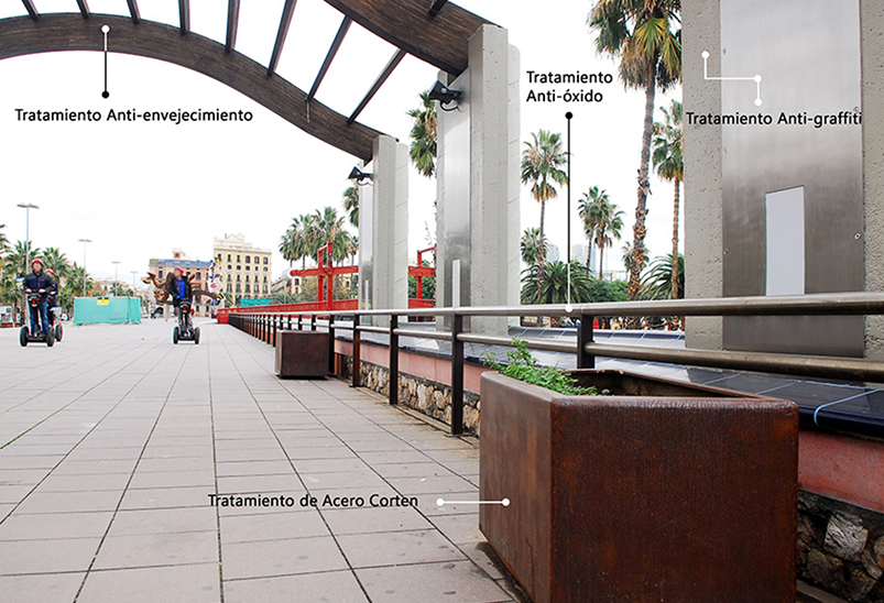 Estos tratamientos mantienen las superficies aisladas de los agentes degradantes ya sean de origen vandálico, climatológico o por el simple uso. De esta manera, la corrección de incidencias se optimiza y, además, los materiales de las infraestructuras ven prolongados sus ciclos de vida útil.