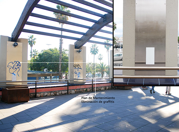 Surface coatings with anti-graffiti, water-repellent, and oil-repellent properties are applied. These treatments isolate surfaces from vandalism-, climate-, and use-related degradation—such as graffiti, pollution, beverage or oil stains, and footprints—thereby extending the service life of the materials.